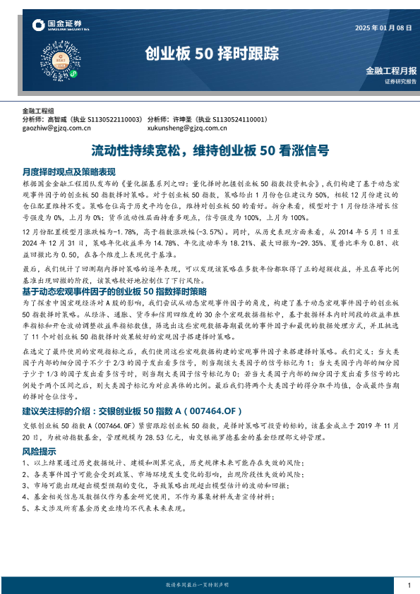【国金证券】【20250108】创业板50择时跟踪:流动性持续宽松,维持创业板50看涨信号-11页