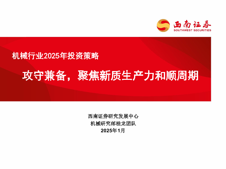 【西南证券】【202501】机械行业2025年投资策略:攻守兼备,聚焦新质生产力和顺周期-137页