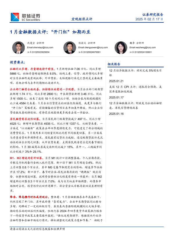 【联储证券】【20250217】1月金融数据点评:“开门红”如期而至-10页