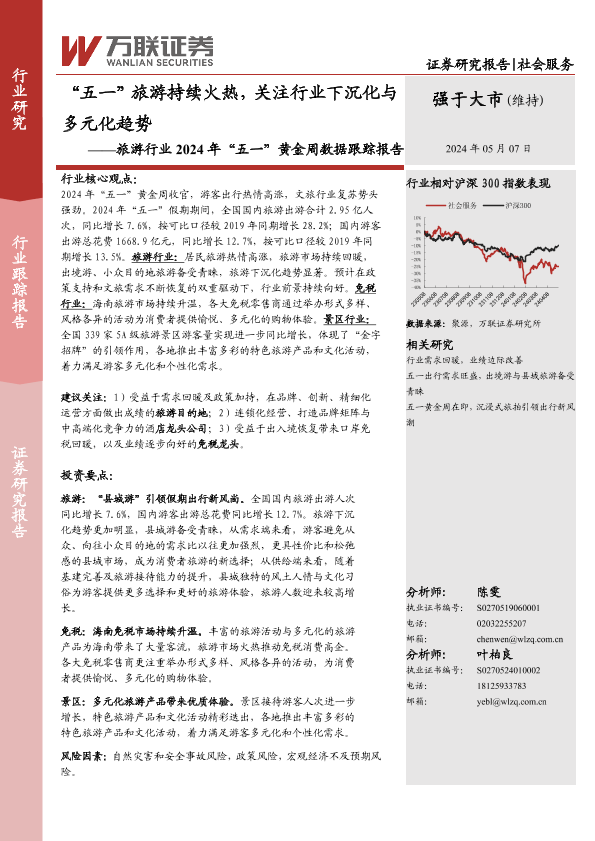 【万联证券】【20240507】旅游行业2024年“五一”黄金周数据跟踪报告:“五一”旅游持续火热,关注行业下沉化与多元化趋势-7页