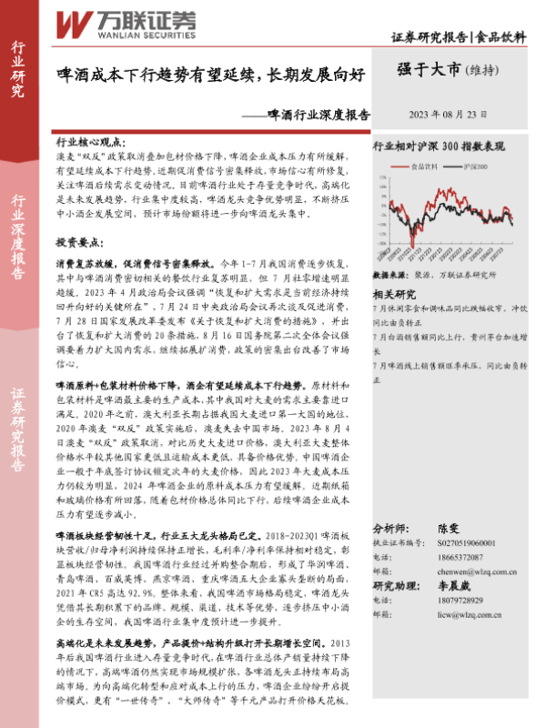 【万联证券】【20230823】万联证券:啤酒行业深度报告-啤酒成本下行趋势有望延续-长期发展向好-21页