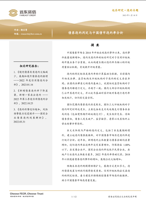 【远东资信】【20230118】远东资信-债券违约判定与中国债市违约率分析-12页