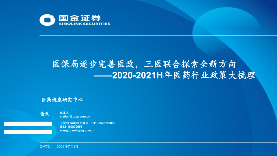 【医药健康研究中心】【20210701】2020-2021H年医药行业政策大梳理:医保局逐步完善医改,三医联合探索全新方向-49页