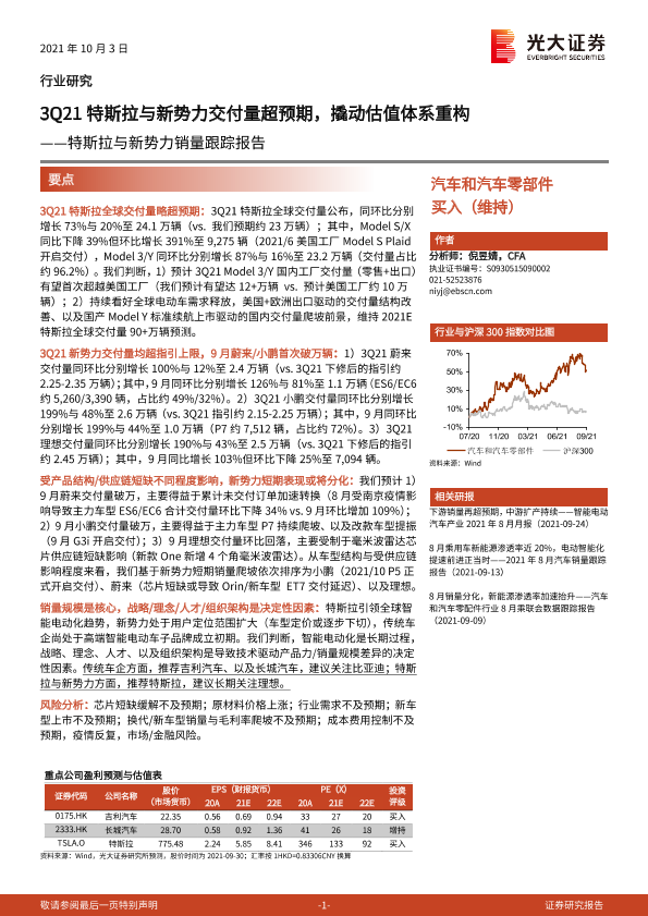 【光大证券】【20211003】3Q21特斯拉与新势力交付量超预期,撬动估值体系重构-4页