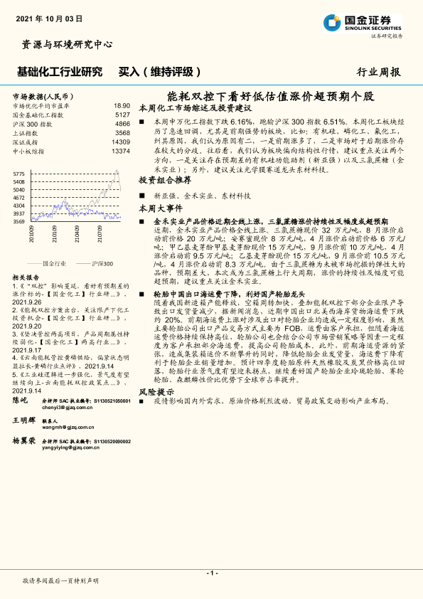 【国金证券】【20211003】20211003-国金证券-基础化工行业周报:能耗双控下看好低估值涨价超预期个股-26页