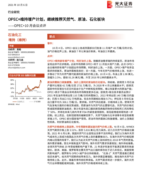 【光大证券】【20211006】OPEC+10月会议点评:OPEC+维持增产计划,继续推荐天然气、原油、石化板块-3页