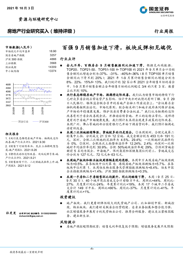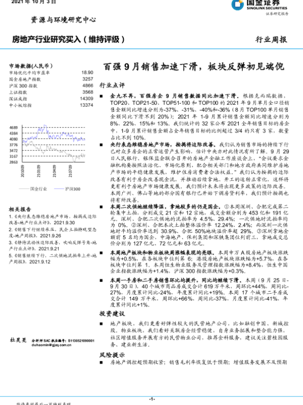 【国金证券】【20211003】20211003-国金证券-房地产行业研究:百强9月销售加速下滑,板块反弹初见端倪-18页