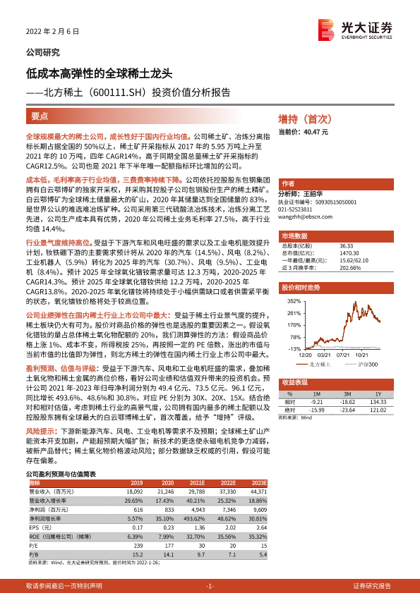 【光大证券】【20220206】深度报告-20220206-光大证券-北方稀土-600111.SH-投资价值分析报告_低成本高弹性的全球稀土龙头-34页