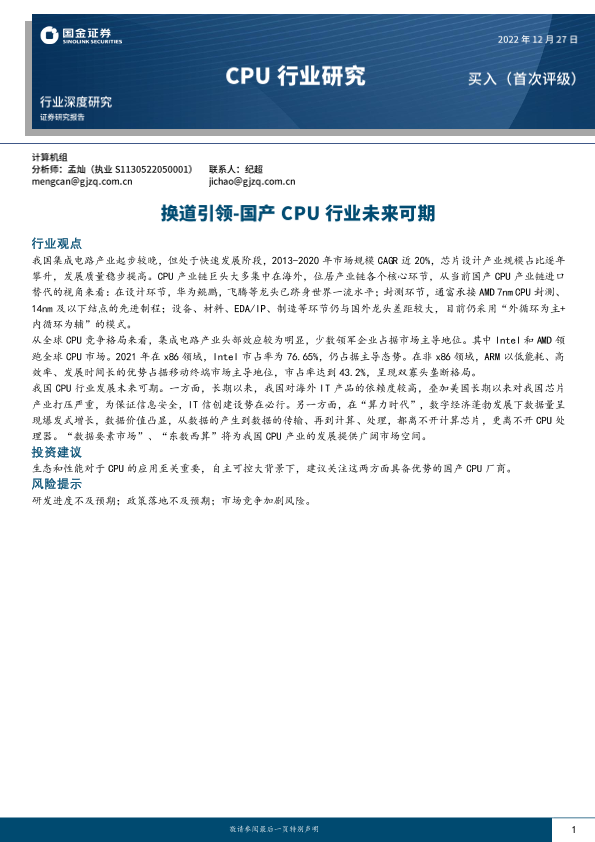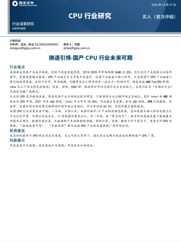 【国金证券】【20221227】换道引领-国产CPU行业未来可期-20页