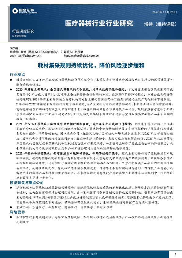 【国金证券】【20221228】深度报告-20221228-国金证券-医疗器械行业深度研究_耗材集采规则持续优化_降价风险逐步缓和-25页