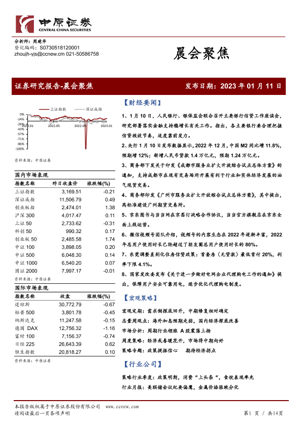 【中原证券】【20230111】20230111-中原证券-晨会聚焦-14页