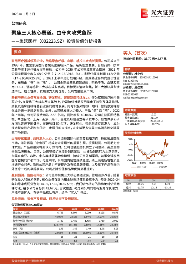 【光大证券】【20230105】深度报告-20230105-光大证券-鱼跃医疗-002223.SZ-投资价值分析报告_聚焦三大核心赛道_由守向攻凭鱼跃-35页