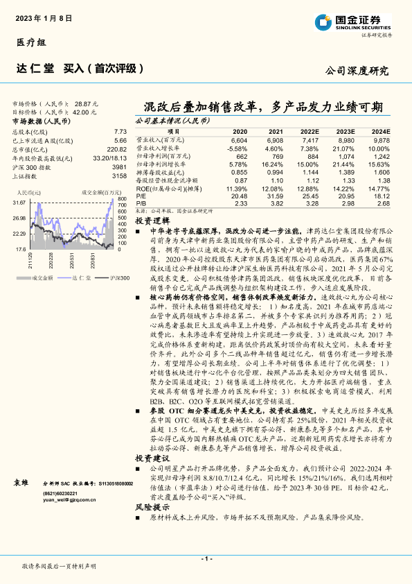 【国金证券】【20230108】深度报告-20230108-国金证券-达仁堂-600329.SH-混改后叠加销售改革_多产品发力业绩可期-15页