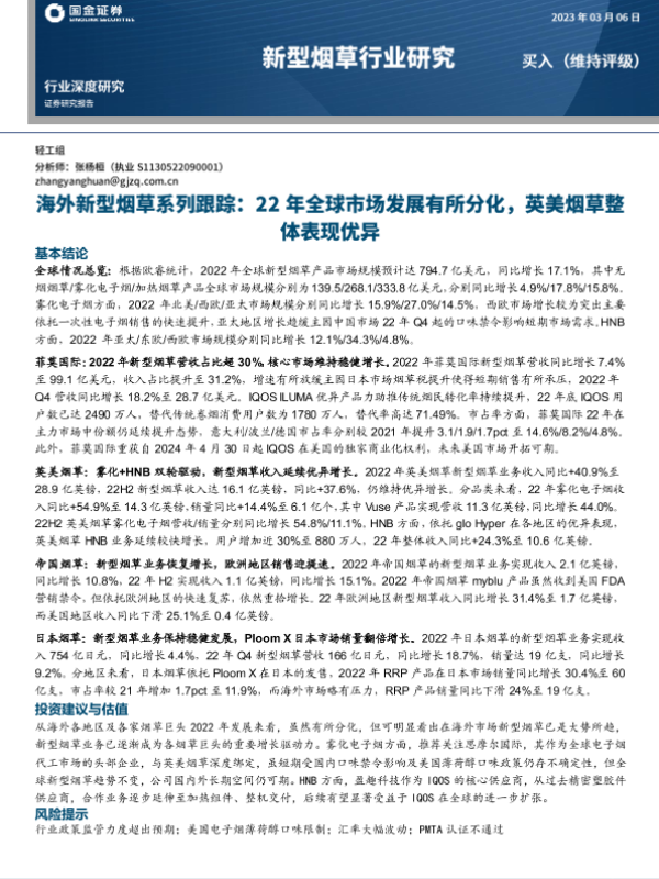 【国金证券】【20230306】深度报告-20230306-国金证券-海外新型烟草系列跟踪_22年全球市场发展有所分化_英美烟草整体表现优异-24页