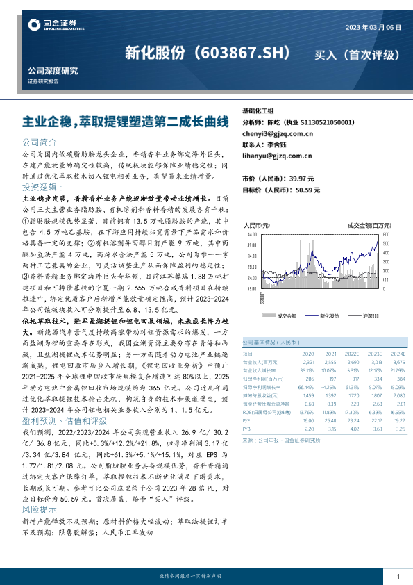【国金证券】【20230306】深度报告-20230306-国金证券-新化股份-603867.SH-主业企稳_萃取提锂塑造第二成长曲线-30页