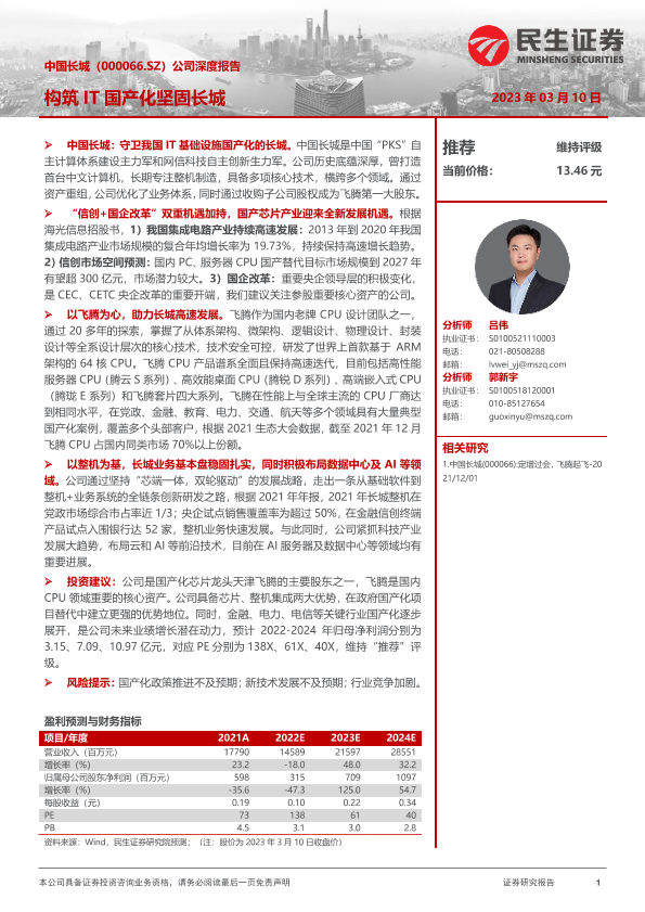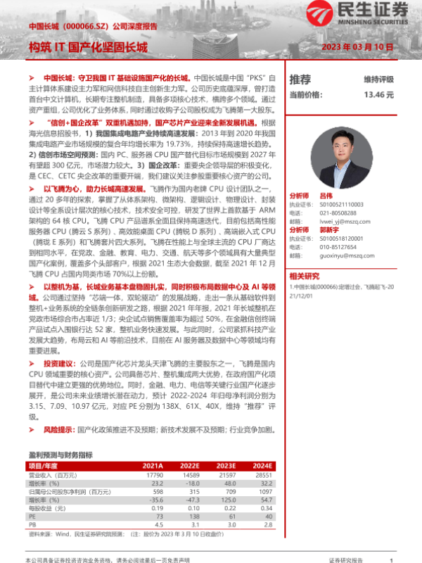 【民生证券】【20230310】中国长城(000066.SZ)公司深度报告_构筑IT国产化坚固长城-47页