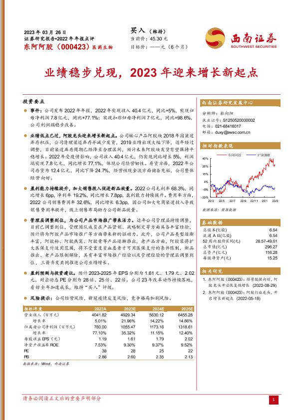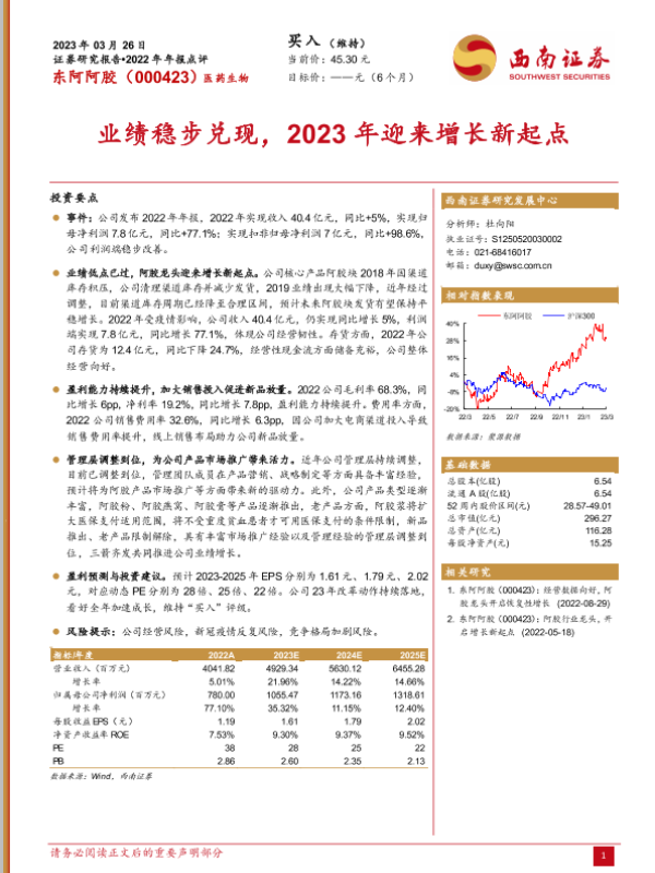 【西南证券】【20230326】东阿阿胶-000423.SZ-业绩稳步兑现_2023年迎来增长新起点-4页