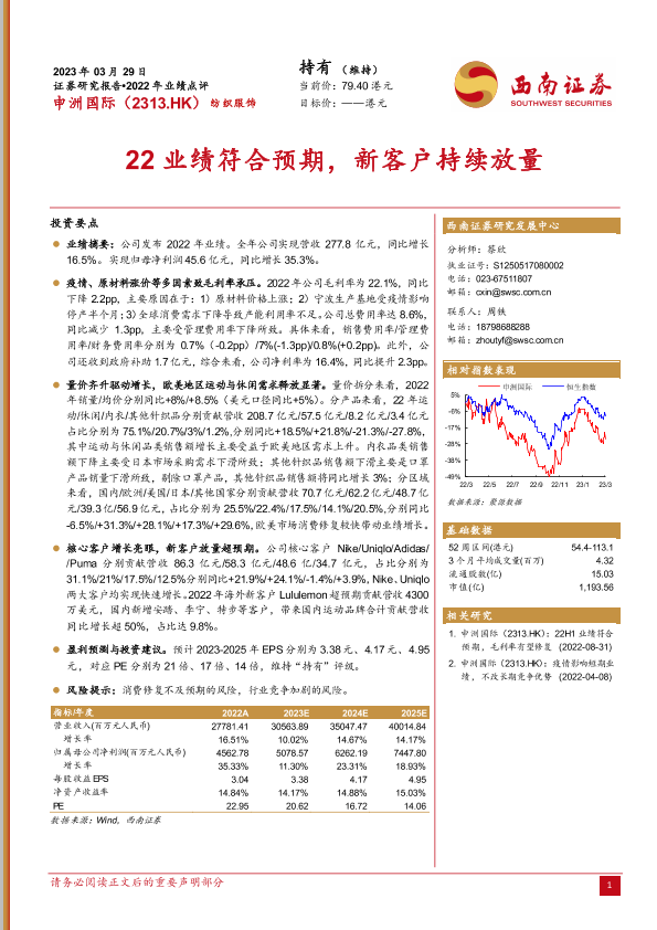 【西南证券】【20230329】申洲国际(2313.HK)22业绩符合预期_新客户持续放量-5页