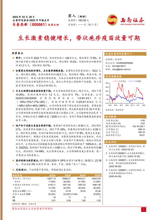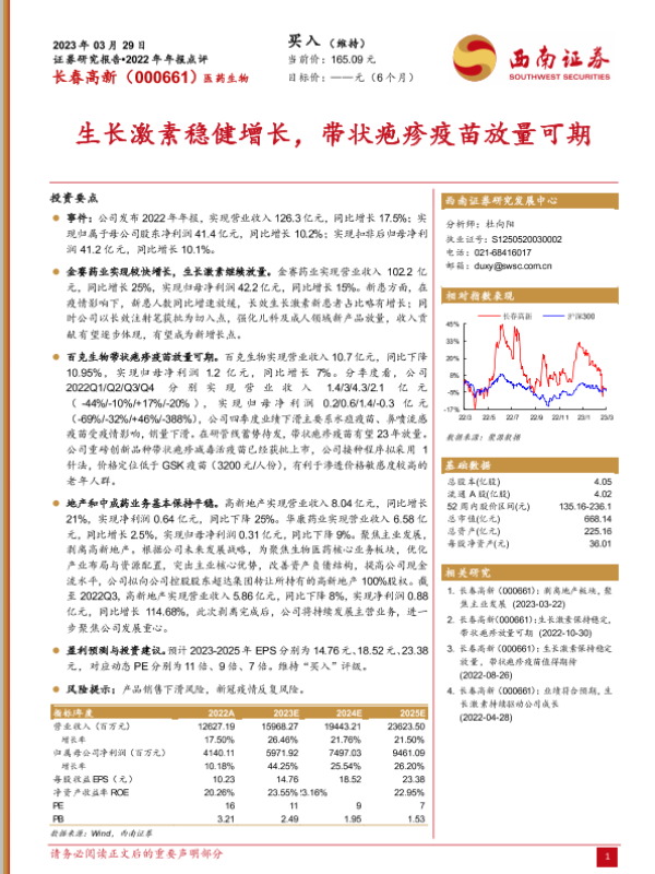 【西南证券】【20230329】2022年年报点评:长春高新(000661.SZ)生长激素稳健增长_带状疱疹疫苗放量可期-4页
