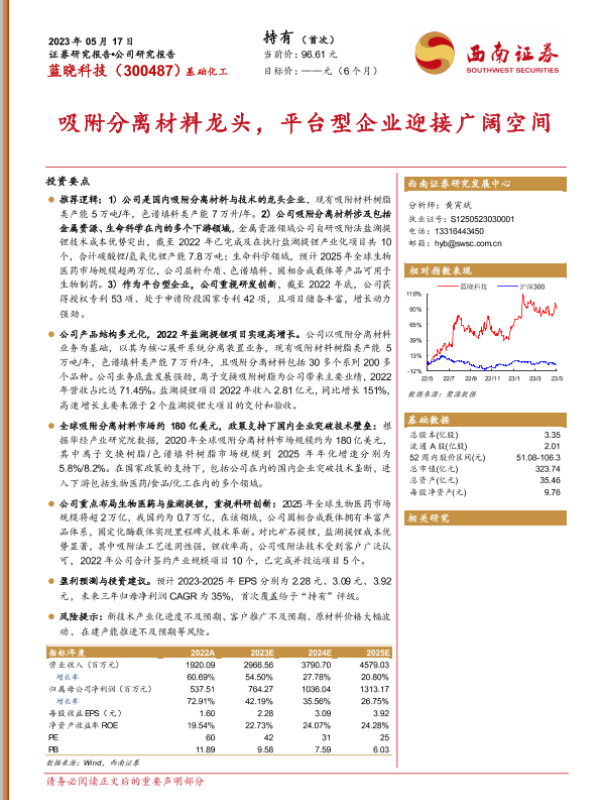 【西南证券】【20230517】蓝晓科技-300487.SZ-吸附分离材料龙头_平台型企业迎接广阔空间-19页