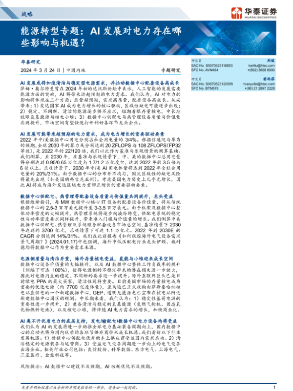 【华泰证券】【20240324】能源转型专题:AI发展对电力存在哪些影响与机遇?-29页