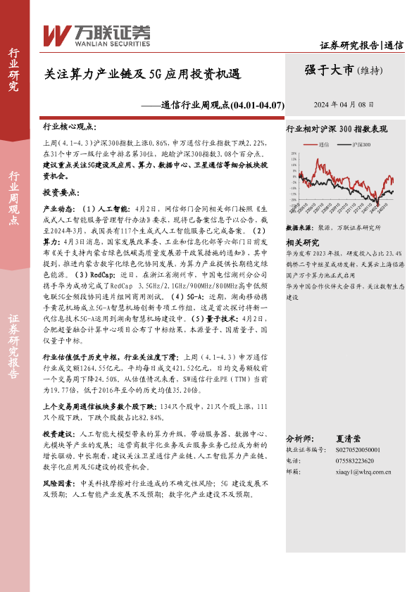 【万联证券】【20240408】2023年09月16日更新-通信-行业周观点:关注算力产业链及5G应用投资机遇-9页