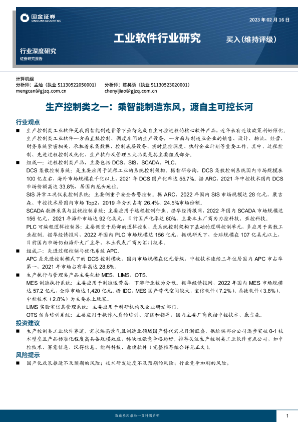 【国金证券】【20230217】工业软件行业研究-生产控制类之一-乘智能制造东风-渡自主可控长河-25页