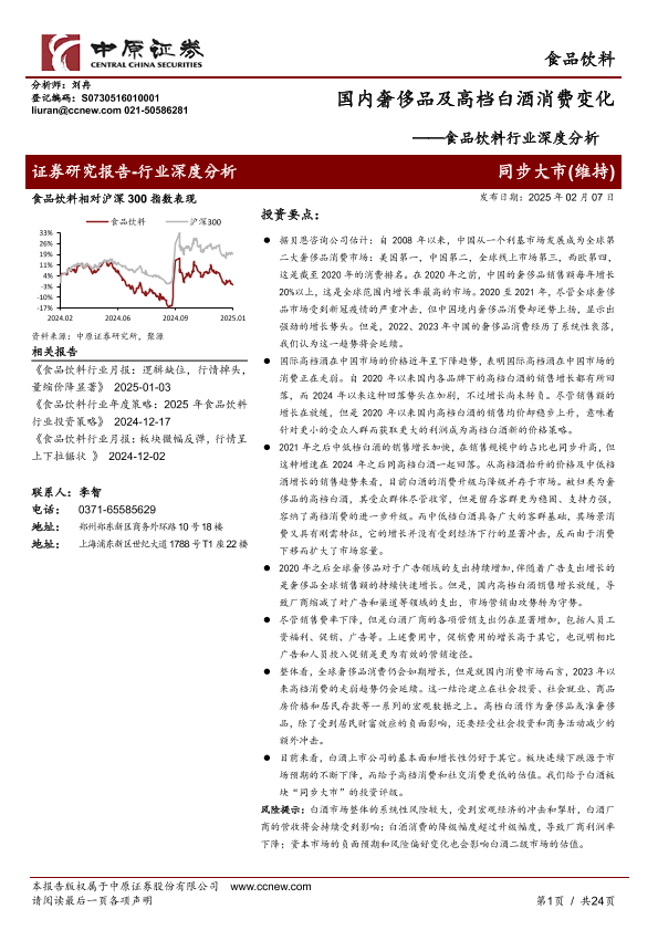【中原证券】【20250207】食品饮料行业深度分析:国内奢侈品及高档白酒消费变化-24页