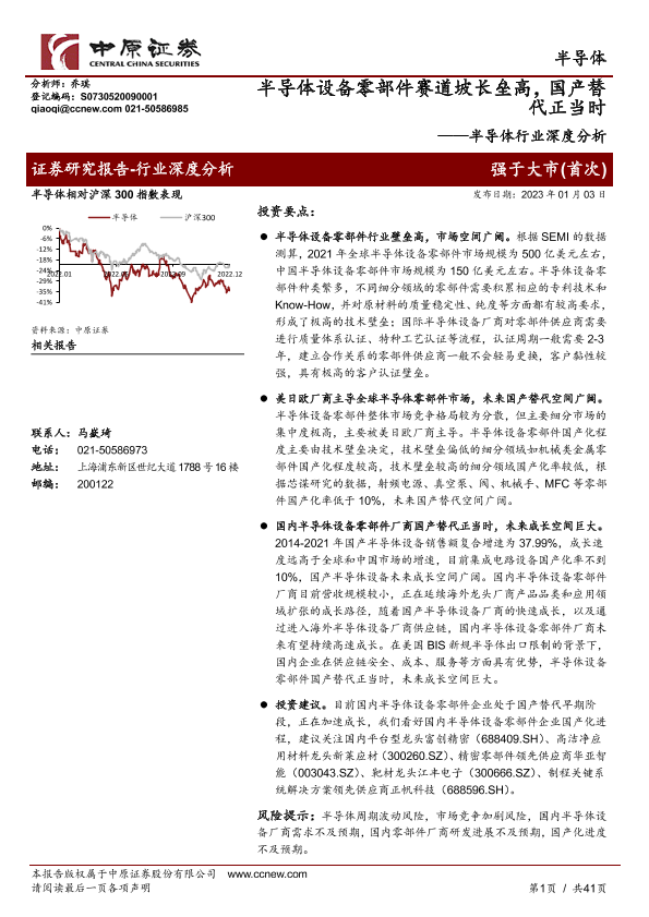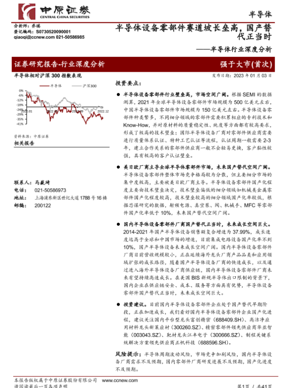【中原证券】【20230103】半导体设备零部件赛道坡长垒高-国产替代正当时-41页