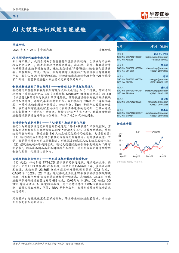 华泰证券 智能座舱 电子设备 汽车行业 AI大模型