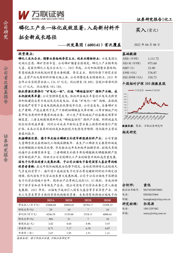 【万联证券】【20220408】磷化工产业一体化成效显著,入局新材料开拓全新成长路径-43页