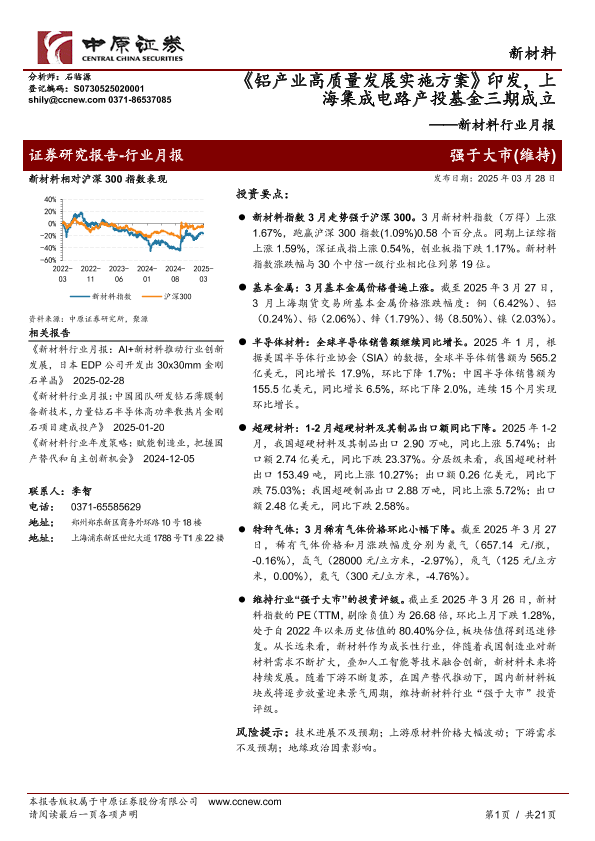 【中原证券】【20250328】新材料行业月报:《铝产业高质量发展实施方案》印发,上海集成电路产投基金三期成立-21页