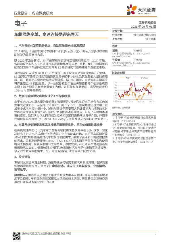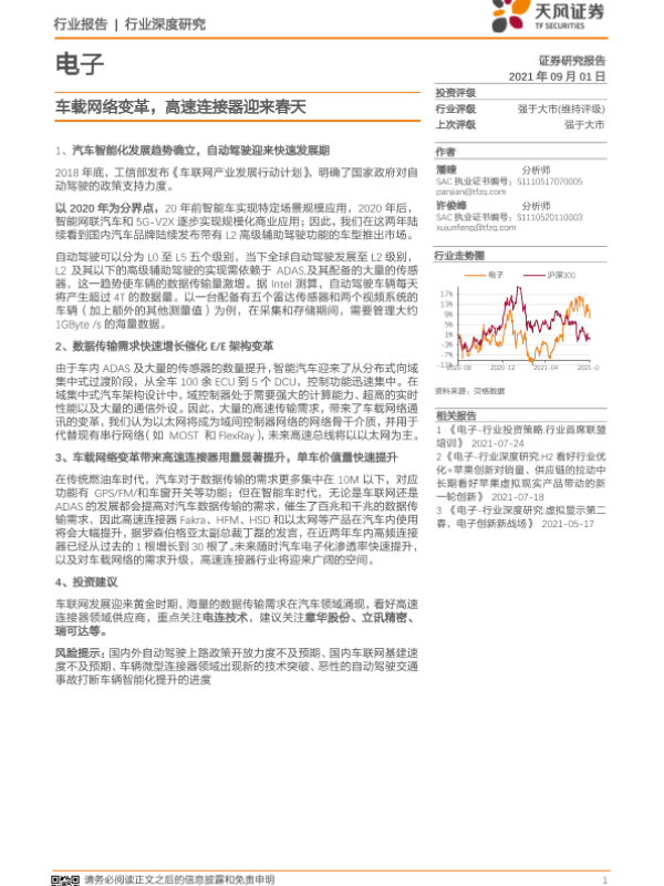【天风证券】【20210901】电子行业:车载网络变革,高速连接器迎来春天-33页