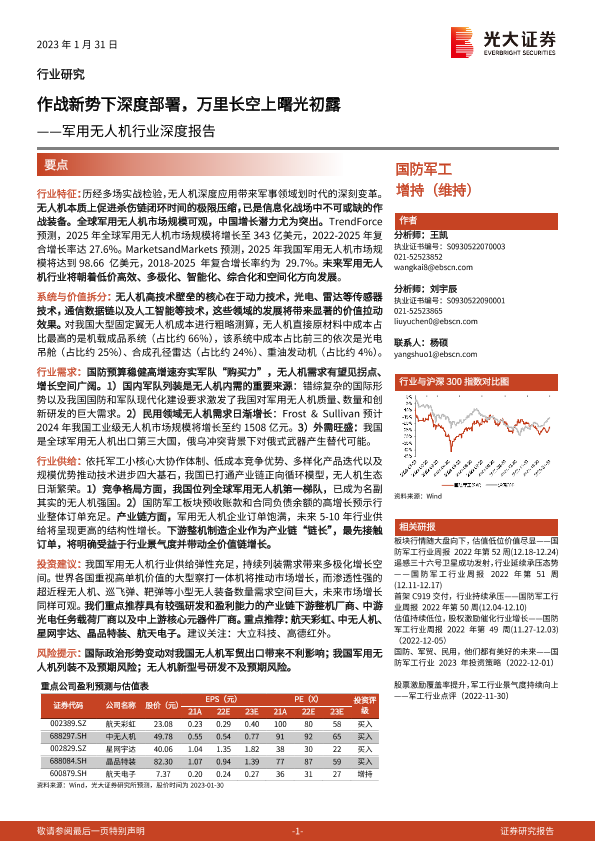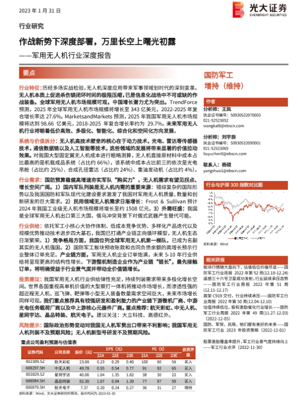 【光大证券】【20230202】作战新势下深度部署,万里长空上曙光初露——军用无人机行业深度报告-74页
