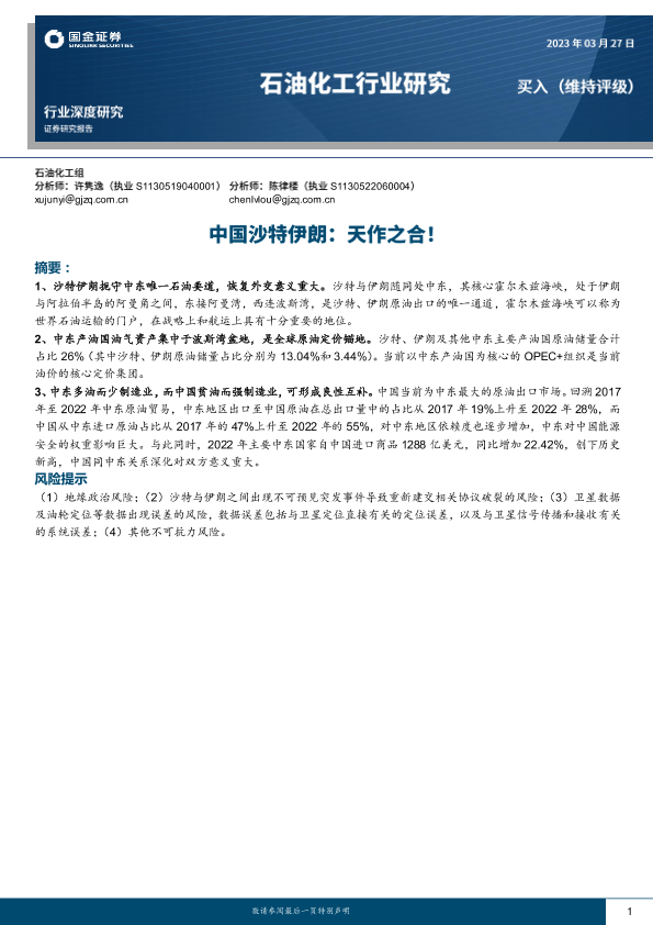【国金证券】【20230328】石油化工行业研究-中国沙特伊朗-天作之合!-36页