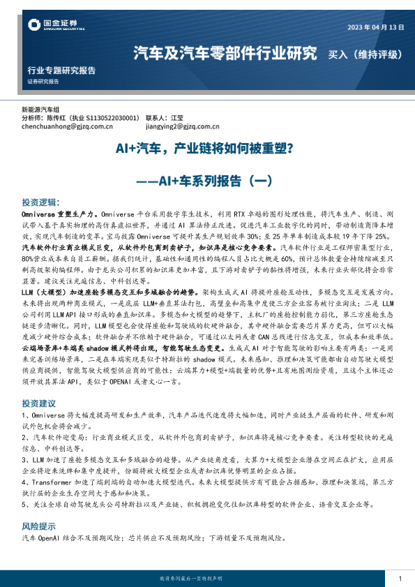 【国金证券】【20230414】AI+车系列报告(一)-AI+汽车-产业链将如何被重塑?-17页