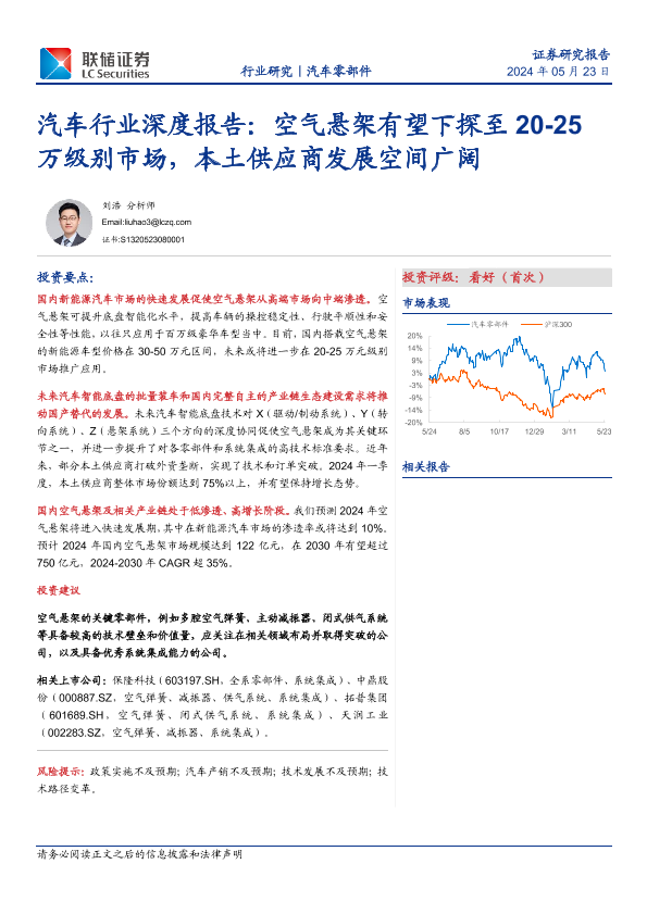 【联储证券】【20240523】汽车行业深度报告-空气悬架有望下探至20-25万级别市场-本土供应商发展空间广阔-17页