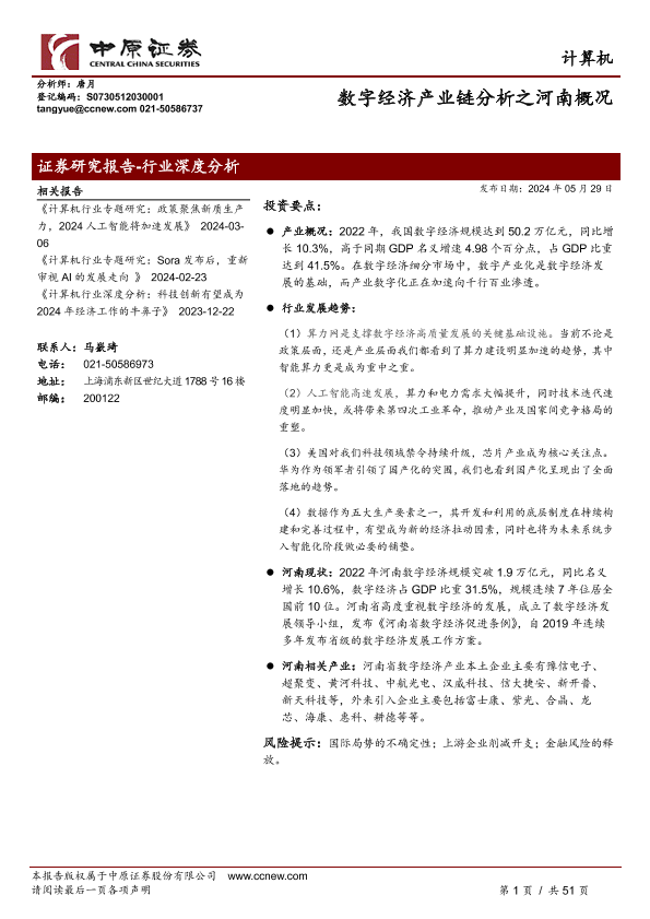 【中原证券】【20240529】2024-05-30-计算机行业深度分析-数字经济产业链分析之河南概况-51页