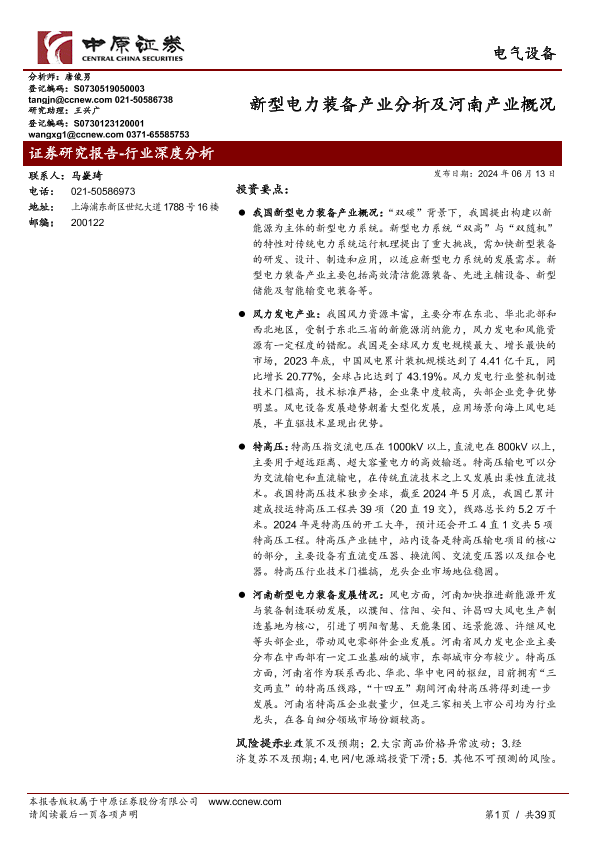 【中原证券】【20240613】2024-06-13-电气设备行业深度分析-新型电力装备产业分析及河南产业概况-39页