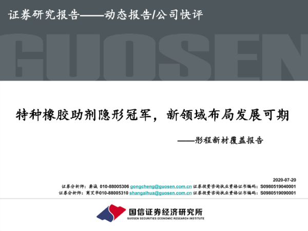 【国信证券】【20200720】彤程新材覆盖报告:特种橡胶助剂隐形冠军,新领域布局发展可期-34页