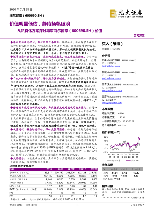 【光大证券】【20200728】从私有化方案探讨再审海尔智家价值:价值明显低估,静待扬帆破浪-39页