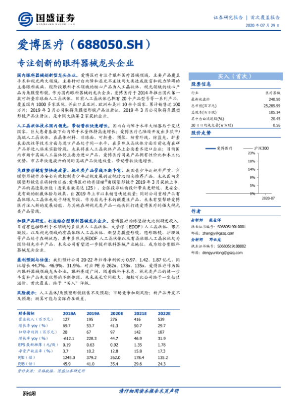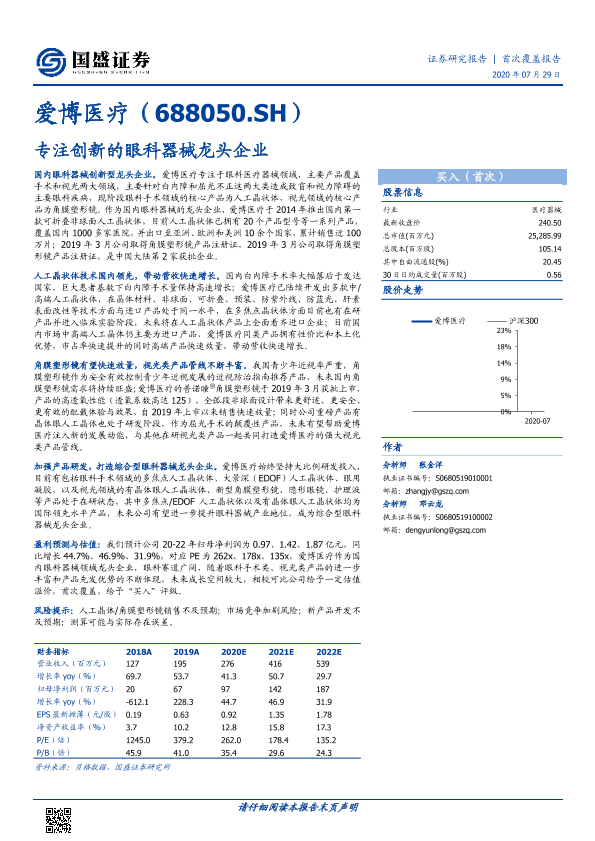 【国盛证券】【20200729】爱博医疗-专注创新的眼科器械龙头企业-52页