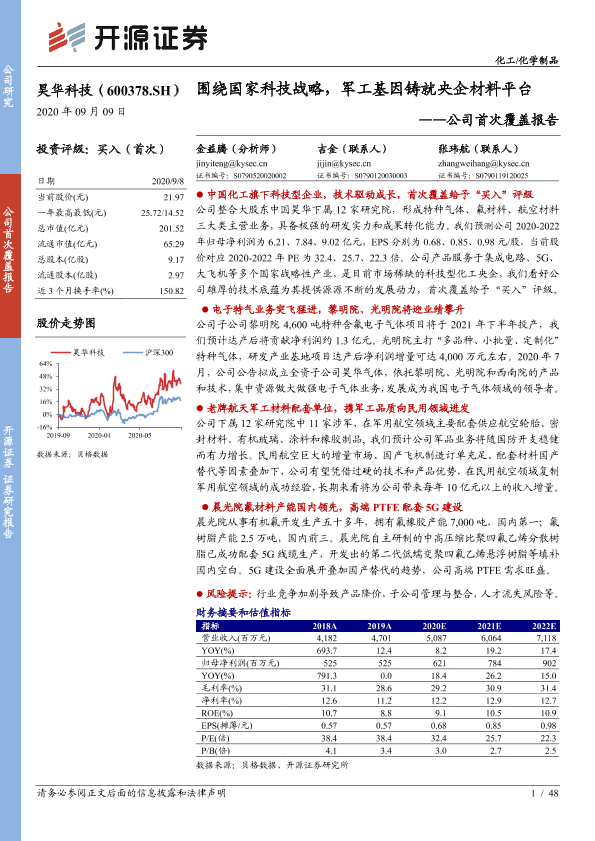 【开源证券】【20200909】20200909-开源证券-昊华科技-600378.SH-公司首次覆盖报告:围绕国家科技战略,军工基因铸就央企材料平台-48页
