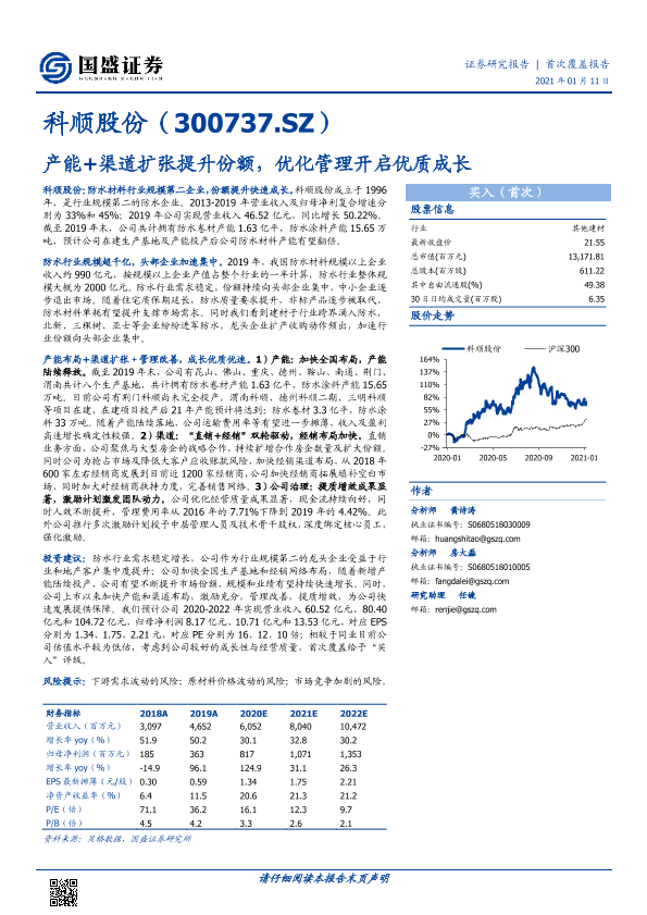 【国盛证券】【20210111】科顺股份:产能+渠道扩张提升份额,优化管理开启优质成长-26页