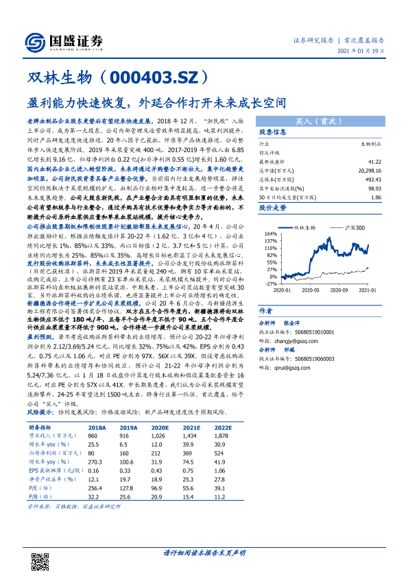 【国盛证券】【20210119】双林生物-盈利能力快速恢复,外延合作打开未来成长空间-26页