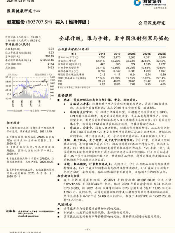 医药行业 健友股份 投资分析 财务预测 注射剂市场