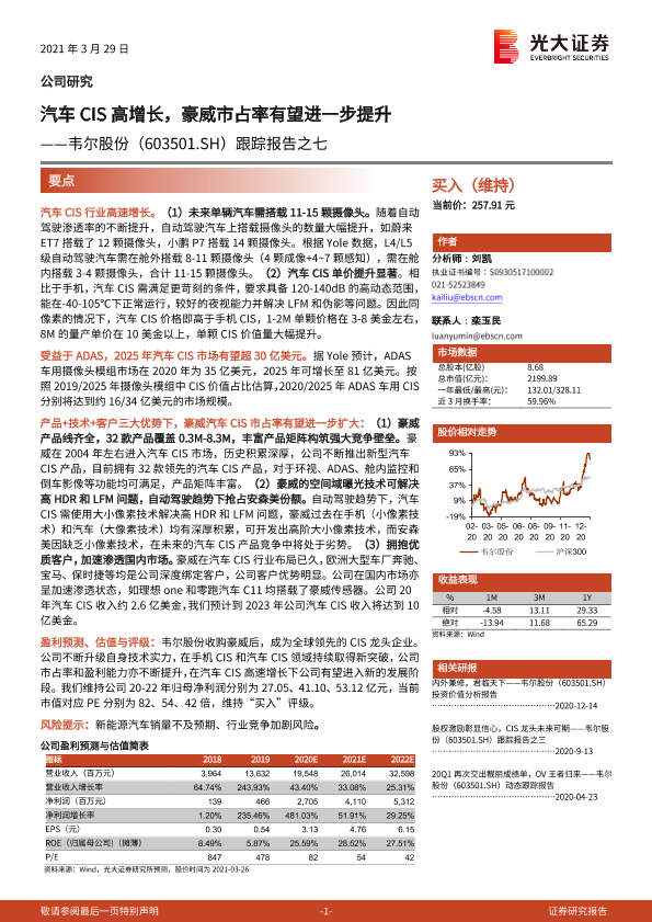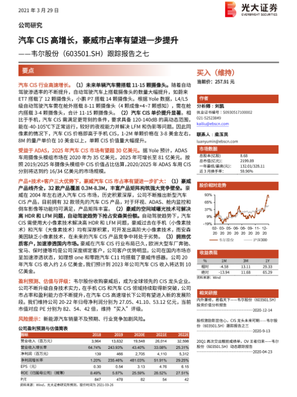 【光大证券】【20210329】汽车CIS高增长,豪威市占率有望进一步提升-22页