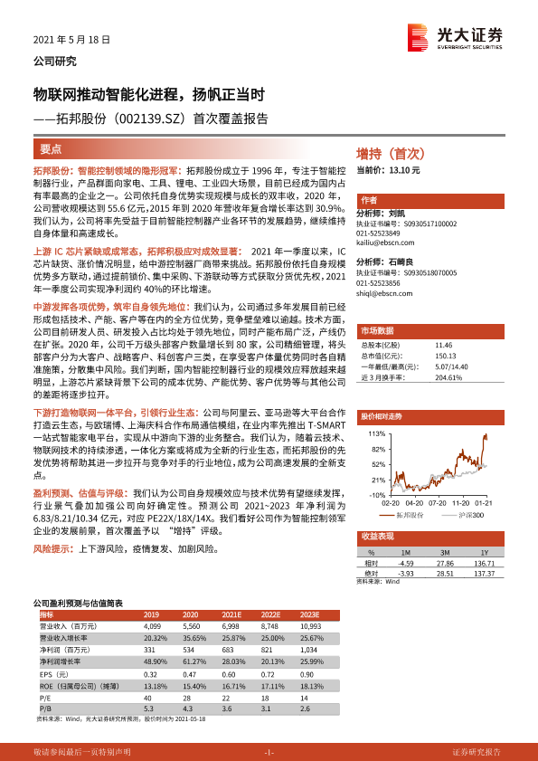 【光大证券】【20210518】20210518-光大证券-拓邦股份-002139.SZ-首次覆盖报告:物联网推动智能化进程,扬帆正当时-24页