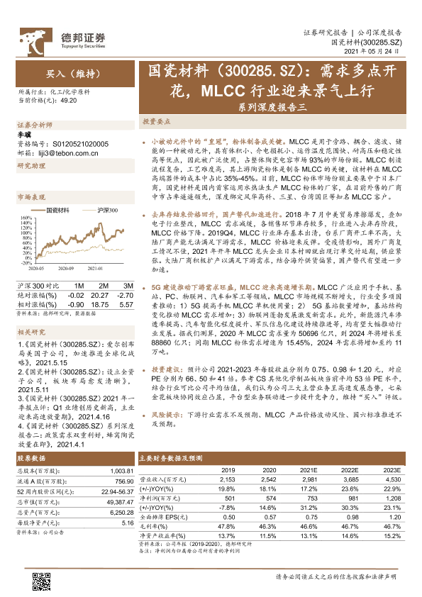 【德邦证券】【20210524】20210524-德邦证券-国瓷材料-300285.SZ-系列深度报告三:需求多点开花,MLCC行业迎来景气上行-34页