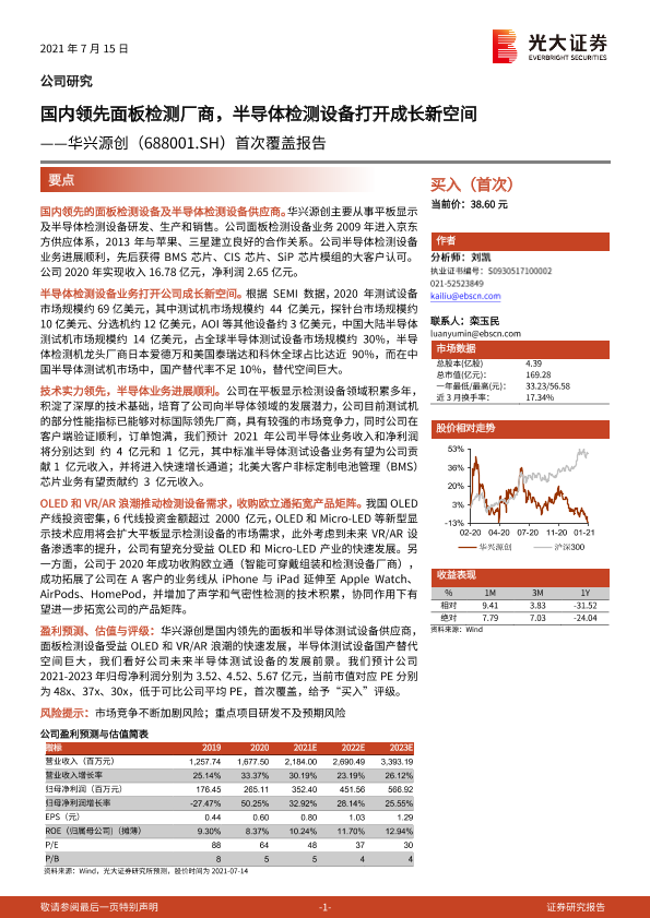 【光大证券】【20210715】国内领先面板检测厂商,半导体检测设备打开成长新空间——华兴源创(688001.SH)首次覆盖报告-34页